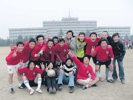 下午 28 队学员进行体能考核,03医本同学们赶到现场为他们加油打气。考核结束后,由于天色已晚,双方足球队进行了一场历时40分钟的足球赛。比赛没有决出胜负,但友谊却在寒风中升华,心中温暖的火焰也燃烧得更旺。