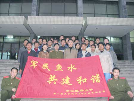 12月3日 8 : 40 ,炮兵学院军绿色的校车在金色的阳光中载着安徽医科大学第一临床学院 03 医学本科一行九十余人开始了盼望已久的军营之旅。这是在03医本与解放军炮兵学院二系 28 队军民共建一周年之际,结合各自实际,双方有计划组织的军营一日游活动,以期在促进双方情谊的同时,能够让同学们接受更多的国防教育知识,领略军营的氛围和军人的风姿。