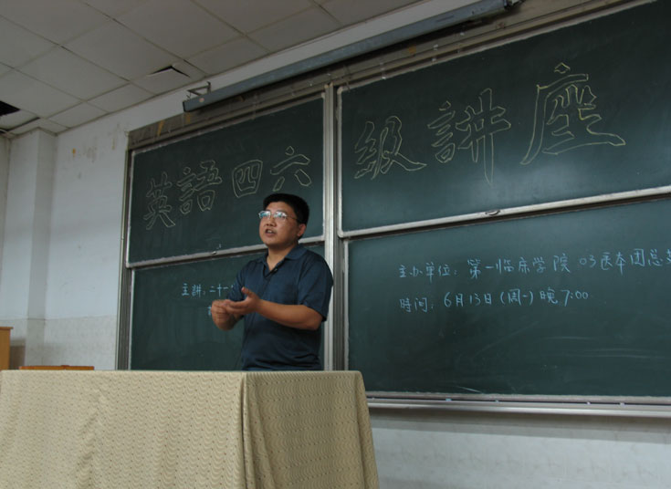 6月13日晚7点, 在12101教室,03医本团总支正在举办英语四﹑六级考试讲座,讲座邀请了原新东方专教、合肥21世纪外语学校的陈然、张勇老师。