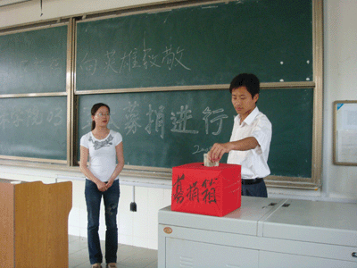 5月12日,四川省汶川县发生里氏8.0级地震,截至目前,共遇难8万余人,举国哀悼。 为响应党中央和国务院的号召,发扬“一方有难,八方支援”的中华传统美德,在广大同学在不同慈善机构募捐的基础上,本年级团总支发动统一组织募捐活动,以表达对遇难者的悼念,对生怀者的祝福与对向灾区伸出援助之手的英雄致敬,6月2日,广大班干部与党员同学带头捐款,广大同学积极响应,短短二十多分钟,共募捐善款数千元,并及时上缴学校救灾办。