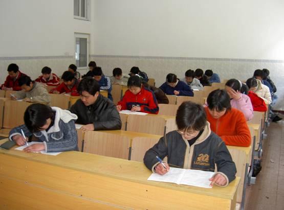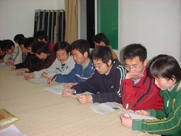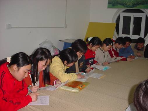 越来越临近期末考试,专业课的复习在紧张的进行着。征得同学们的同意后,我们定于在每周周日上午9:00-11:00进行模拟考试,时间选择和正式考试一致,在考试程序、考试纪律上都与四级保持一致,目的为同学们提供一个逼真的环境,同时我们还要求一些英语优秀的同学介绍一些考试技巧和应试策略。每次考完以后,班干们及时的对收上来的试卷客观题进行评改,作文则交给老师,让她指出不足。