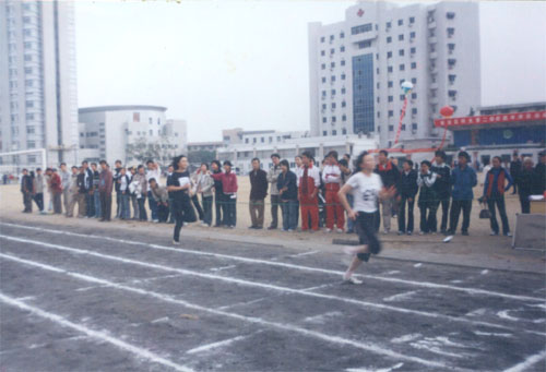 03年秋季运动会上,我们班的朱丽媛同学在女子100米200米比赛中,取得了两个前十名的好成绩,这对大一进校的新生来说很不容易。当然,全班同学都在为她助威呐喊,给她 无微不至的关怀照顾,每当她冲到终点,总会有同学开心地迎接她。