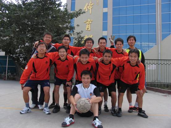 球场上我们身着橙色的球衣,像一团团跳动的火焰尽情的挥洒着力量与激情。我们倡导攻势足球,敢于和任何对手进行对攻,这于本班勇于进取的精神也是一脉相承的。每赢得一场比赛我们都很高兴,高兴的是我们通过自己的努力为班级争得了荣誉,我们也曾遇到挫折,但这并不能使我们气馁,永不言败是我们的信条!每当比赛落后时,总有一股强大的信念支撑着队员们继续战斗。我们相信:失败不属于我们!我们为每一次把球送入对手的大门而努力着,摔倒了,不要紧,轻伤不下火线,站起来拍拍身上的尘土继续战斗!不比赛时队员们也能很自觉的刻苦训练,好成绩的取得与队员们的刻苦训练也是分不开的。球场上的我们不仅是队友更是兄弟,不论是谁进球,大家都会由衷的感到高兴。每一次胜利,甚至每一个进球都凝聚着集体的汗水甚至是血的代价,但大家都无怨无悔。这一切也为我们赢得了“橙色风暴”的美名。