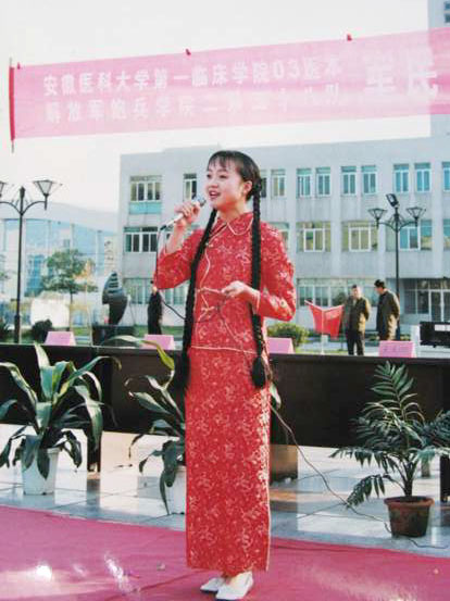 让我们来看看这位才女的表现吧!初来乍到,身在异乡都没有让她胆怯,因为一个身怀绝技的女子终究会在演艺舞台上释放光芒。在 04 安医大第十九届校园歌手大赛中她以一首《兵哥哥》夺得桂冠!于是在 04 年 6 月份,她代表安医大在中国科学技术大学举行的生活与艺术活动中将《兵哥哥》再添光彩。也因为如此在广大同学的一至要求下, 04 年下半年由 03 医本和炮兵学院在我校文化广场举办的军民共建活动中,她再次将这首意味深长的《兵哥哥》唱到了婆家,永记在了兵哥哥的心中!在安医大 05 年元旦晚会中她又以一曲《大地飞歌》独占鳌头! 05 年 3 月份她代表安医大在安徽省首届大学生艺术展演中更以此首荣获二等奖的好成绩!在安医大 05 年国庆文艺汇演中她又以优秀的唱功为《青春舞曲》荣获校一等奖立下了汗马功劳!她是我们八班的骄傲,我们祝福她:在以后的医学、艺术之旅双丰收!也希望她的歌声会永远陪伴着我们! |