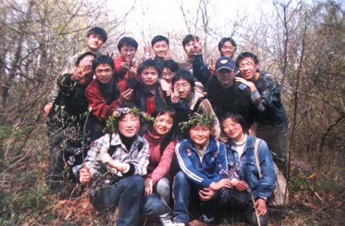 这一张是我们班第一次外出游玩,他们在紫蓬山上留下的甜美的笑容。大家拥在一起,像认识了几年的老朋友一样亲密!她们头上的花环是可爱的男生亲手编织的。